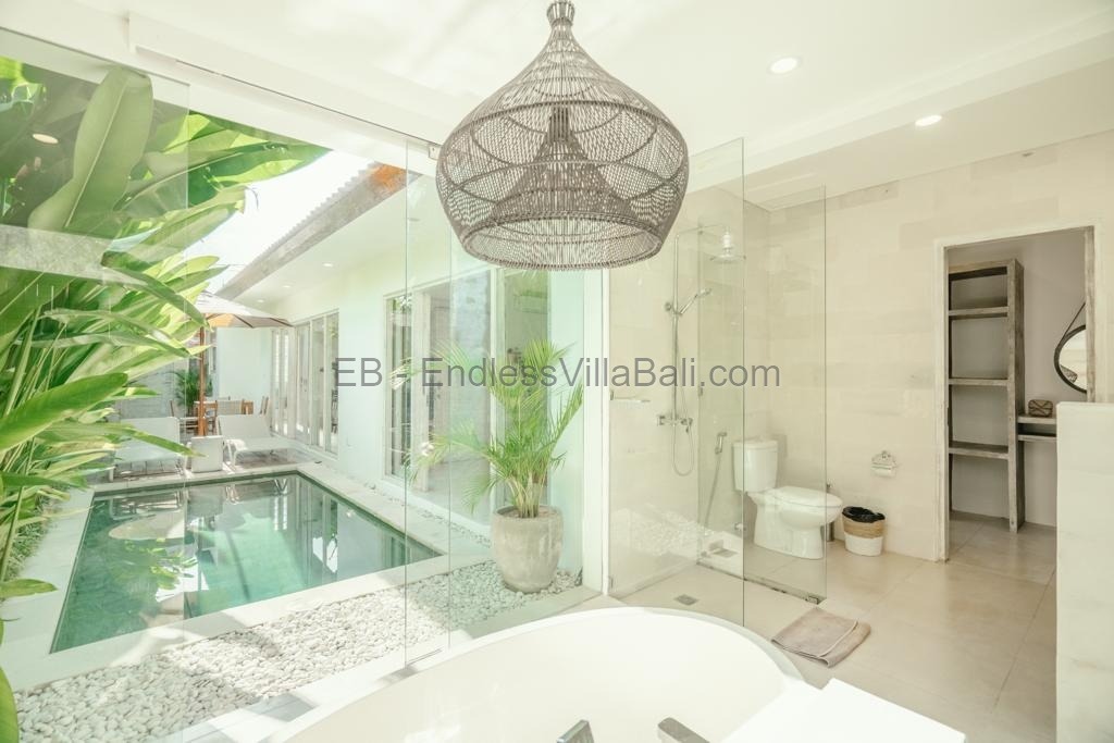 Step inside, and you'll find a beautifully designed bedroom, complete with an ensuite bathroom featuring a luxurious bathtub. The villa is equipped with modern amenities such as air conditioning (AC) and a water heater, ensuring your comfort in the Balinese heat.